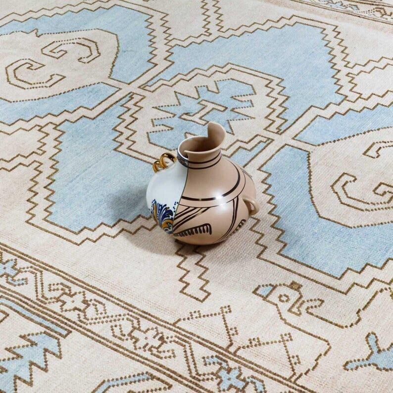 Vintage Handmade Turkish Area Rug - Geometric Design Oushak Rug